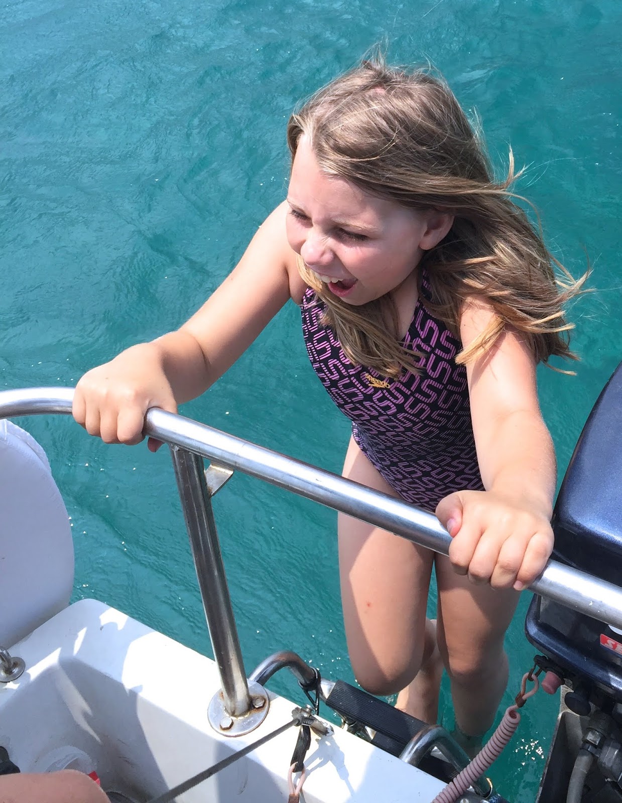 Elisabeth decided the water was cold but didn't smile for the camera!